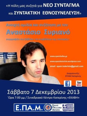 Εκδήλωση για το Συνταγμα και την Συντακτικη Εθνοσυνελευση στην Κατερίνη. Αναρτήθηκε από τον/τηνAnastasios Syrianos24 Νοεμβρίου 2013Δημοσιεύθηκε στηνΧωρίς κατηγορία Κοινοποίησε το: Κάνε κλικ για να μοιραστείς στο X(Ανοίγει σε νέο παράθυρο) Χ Πατήστε για κοινοποίηση στο Facebook(Ανοίγει σε νέο παράθυρο) Facebook Μου αρέσει! Φόρτωση... Σχετικά